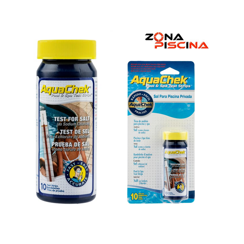Bote tiras de análisis de sal para el agua de las piscinas.