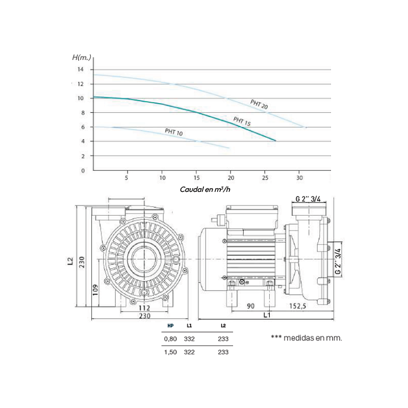 MOD. 21759 / BOMBA PHT 20 / HP 1,50 / VOLTAJE 230 / 20 CAUDAL M3/H (10MT.)