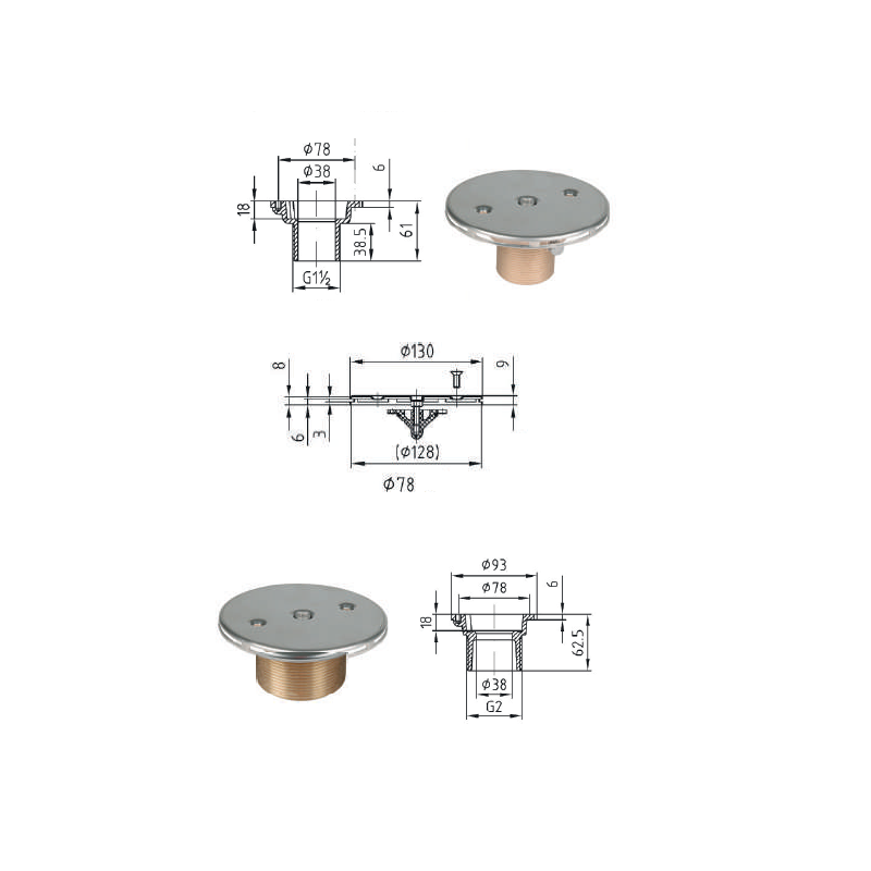 Boquilla impulsor impulsión de fondo bronce y acero inoxidable piscina, spa