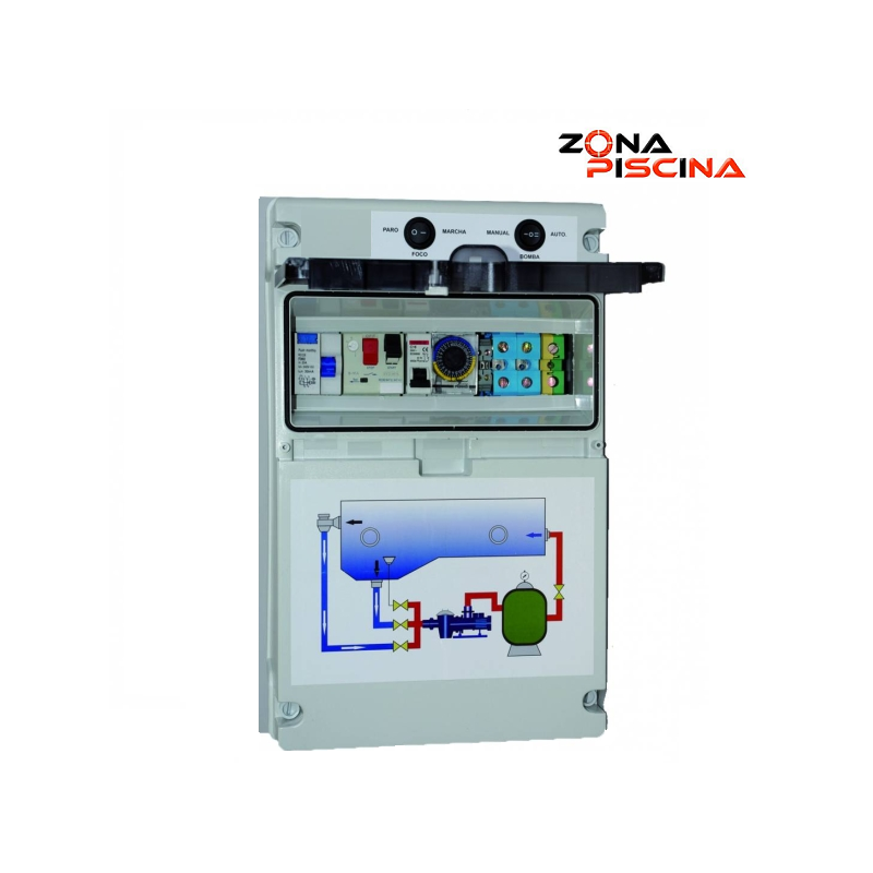 Cuadro eléctrico especial piscinas, con transformador 100w, con protección de 0 à 2 CV. Monofasico