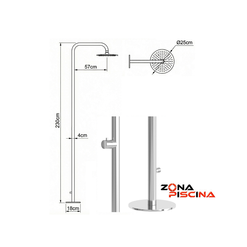 Ducha para piscina de diseño en acero inoxidable aisi 316L