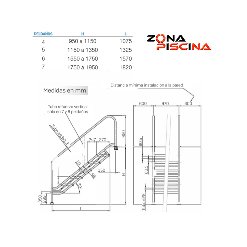 Escaleras de facil acceso, para piscinas de uso privado o público.