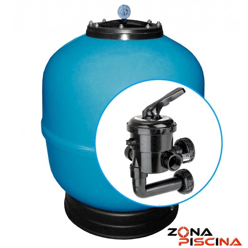 Este filtro de arena para piscinas está disponible sin válvula selectora o con válvula selectora AstralPool, en versión bayoneta o atornillada. La válvula permite realizar todas las funciones del sistema de filtración: filtración, lavado, enjuague, recirculación, vaciado, cerrado e invernaje.