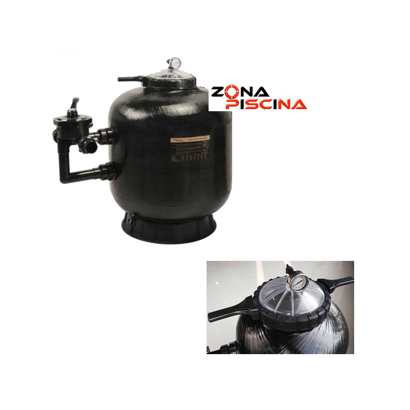 La tapa transparente facilita la inspección del lecho del filtro, mientras que su diseño roscado simplifica el mantenimiento, ya que no requiere