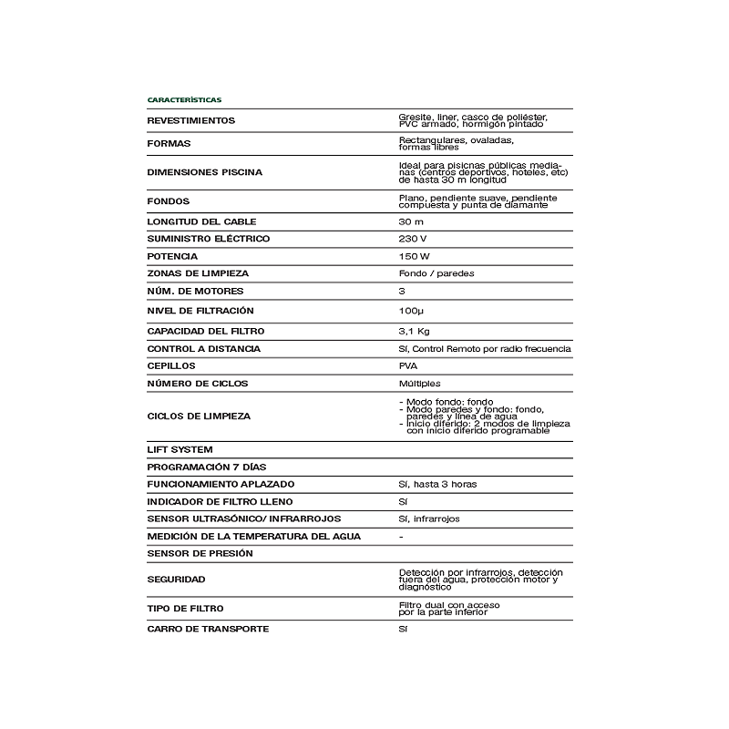 Dimensiones del limpiafondos: (L x An x Al) 43 x 43 x 54 cm.