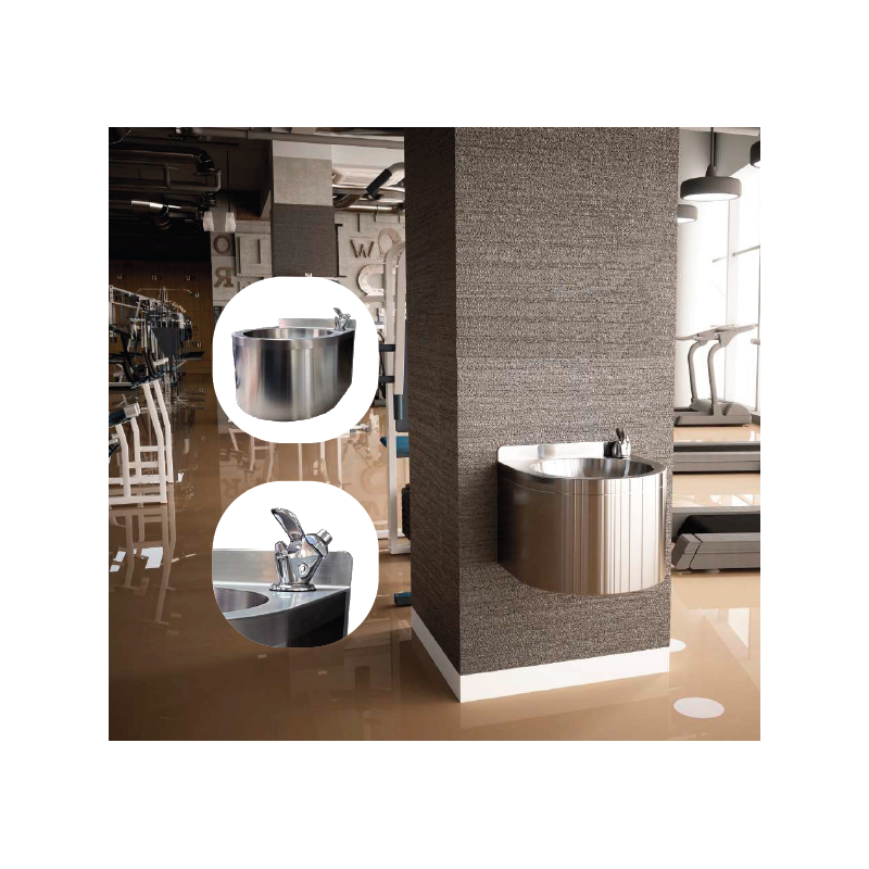Fuente de agua con grifo pulsador en acero inoxidable aisi 316 de calidad marina.