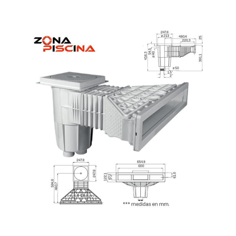 Skimmer boca estrecha y alargada tipo espejo para piscinas de hormigón