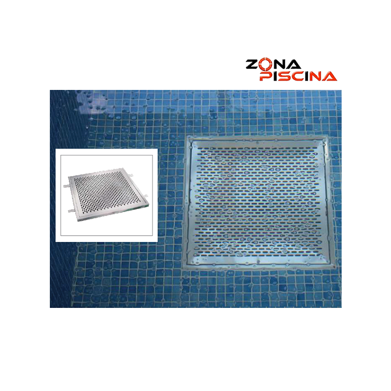 Rejilla desagüe drenaje cuadrada, en acero inoxidable Aisi 316 para piscinas.