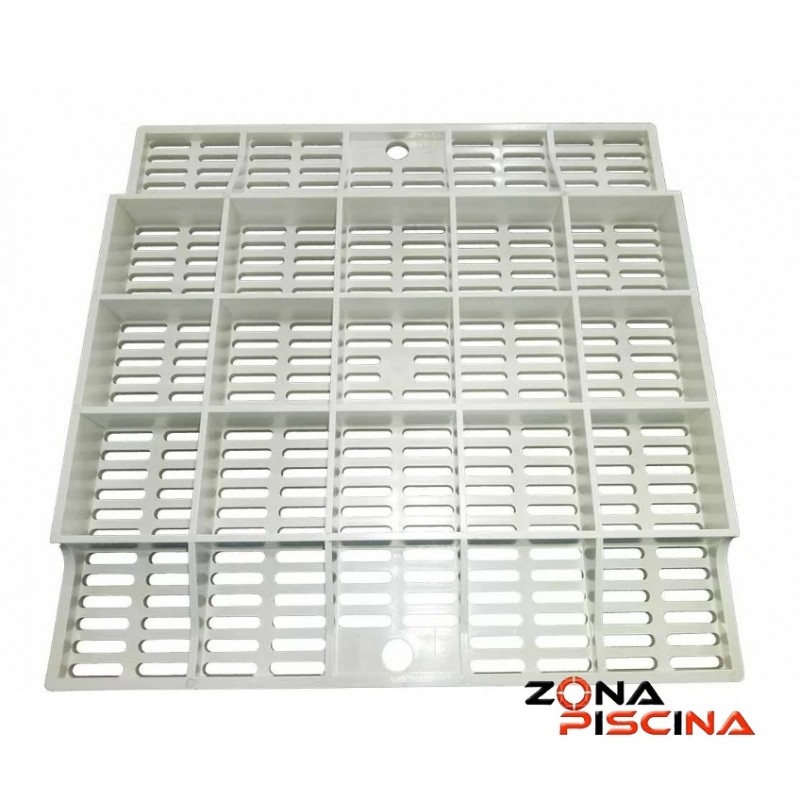Repuesto de rejilla cuadrada Kripsol en ABS blanco. Medida de 250 mm. Resistente a químicos y rayos UV para una larga vida útil en exteriores.
