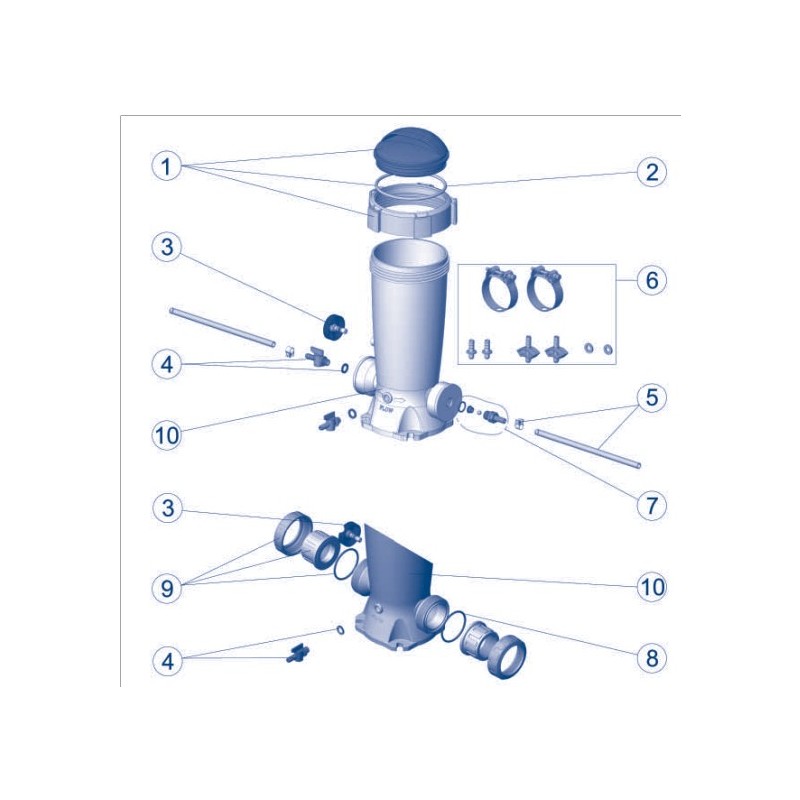 Recambios / Repuestos del dosificador de cloro de pastillas de la marca AstralPool para piscinas.